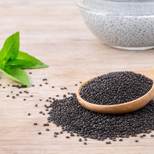 Cách ngâm hạt é: hạt é khô vo sạch, ngâm nước ấm cho nở đều, sau 15 phút, hạt é sẽ nở đều, cho thêm ít đường và đá vào khuấy đều để làm thức uống mát lạnh, bổ dưỡng.